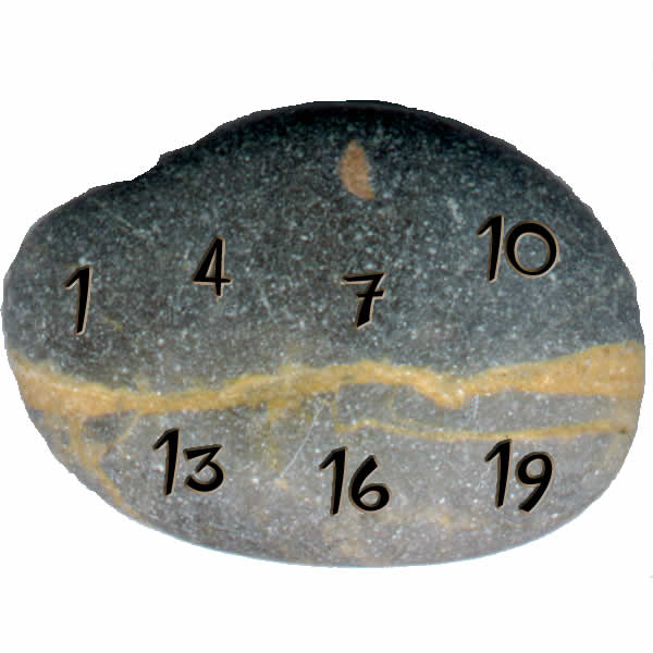 Stein eingeritzt ist. Wenn die Zahl auf dem ersten Stein